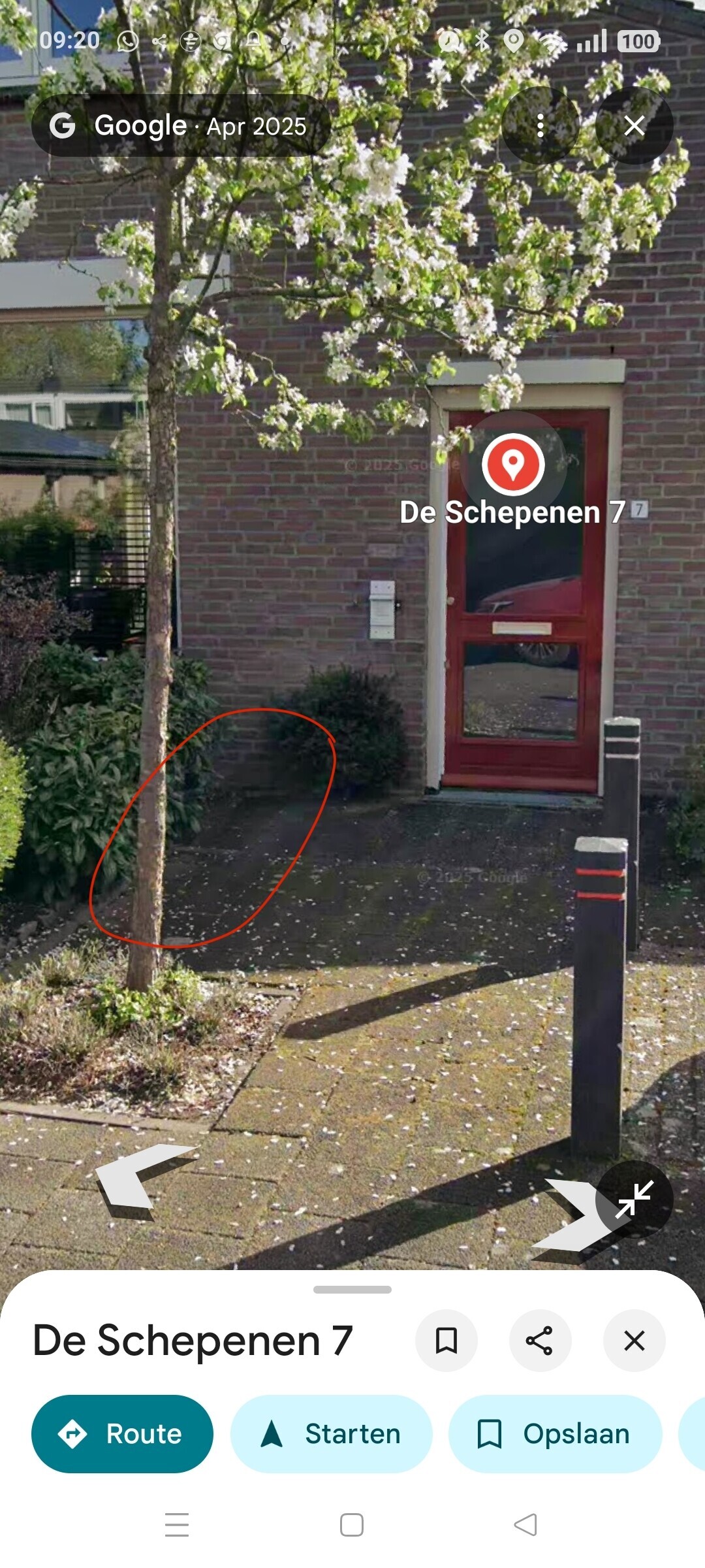 Nu is er vanuit onze voordeur meteen (met de rug naar de voordeur) rechts de tuin van de buren, en recht naar voren een boom waarbij 3 tegels vrij zijn voor rondom de boom.