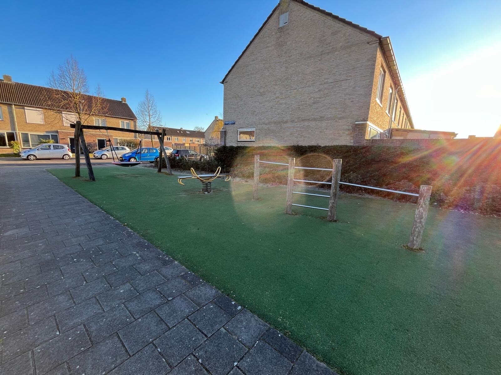 - Nieuwe en vrolijke speeltoestellen voor de leeftijdsgroep 2-6. Een speelhuisje, een mini-spinnenwebschommel, een marsrover en speelpaneel met spelletjes. En houtsnippers als ondergrond.