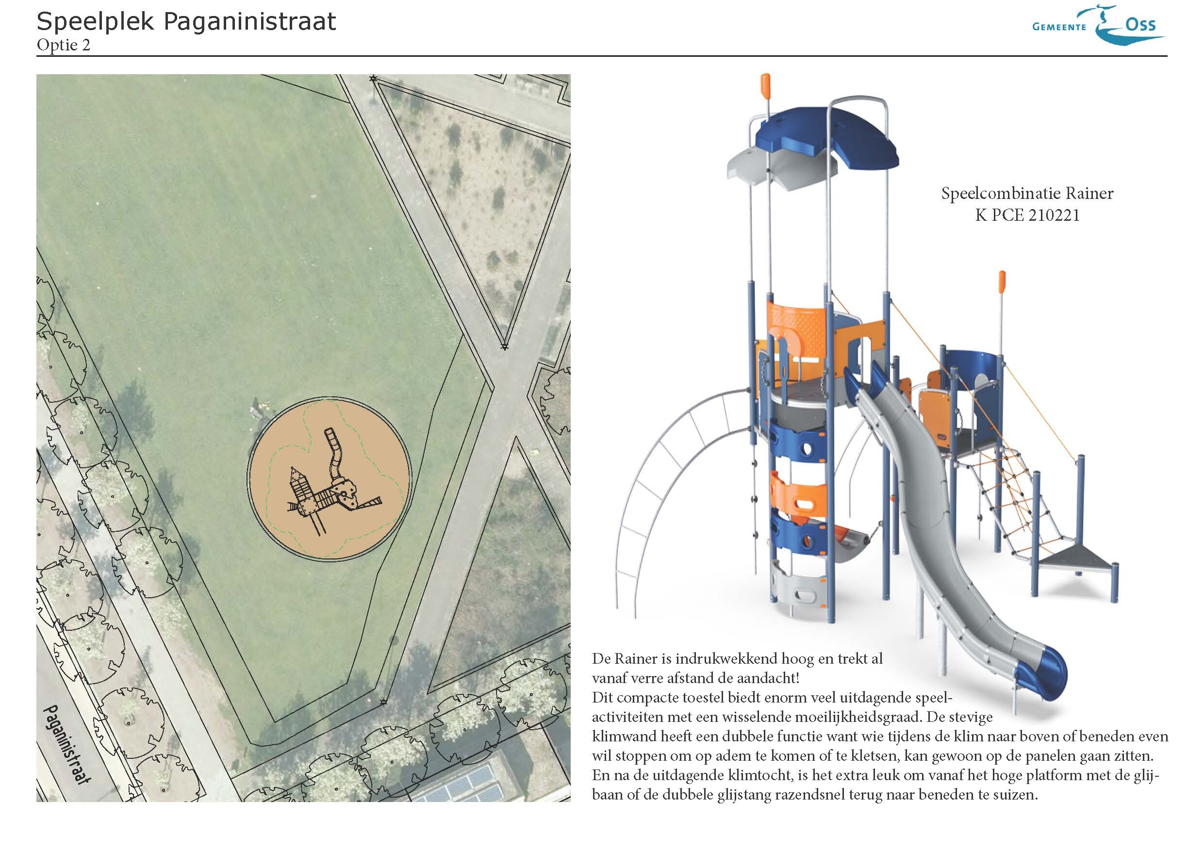 De gemeente Oss gaat het speeltoestel in de Paganinistraat vernieuwen. Er staat nu een groot klimtoestel. Op diezelfde plek komt een nieuw speeltoestel terug. En jij mag kiezen welke. Reageren kan op deze website.